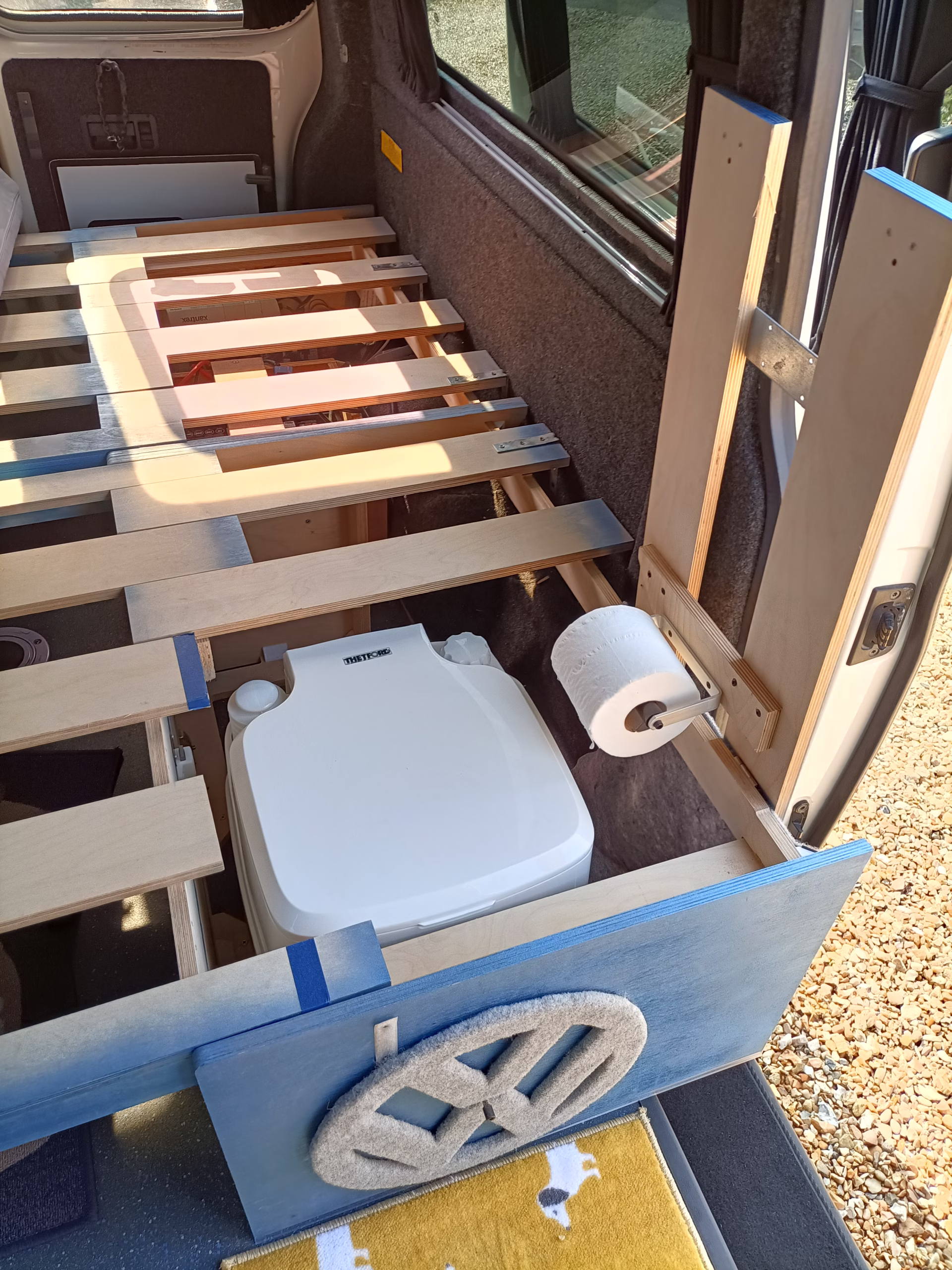 ⦁ Thetford 165 toilet under bed with discreet plunger.