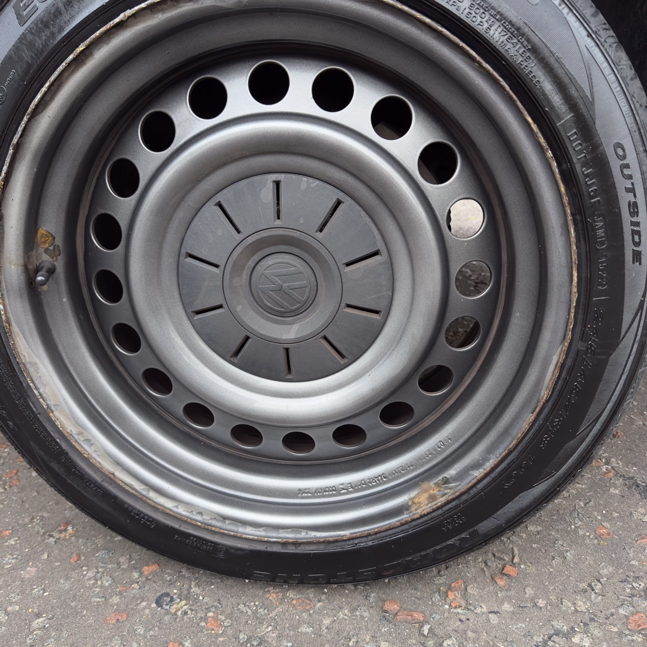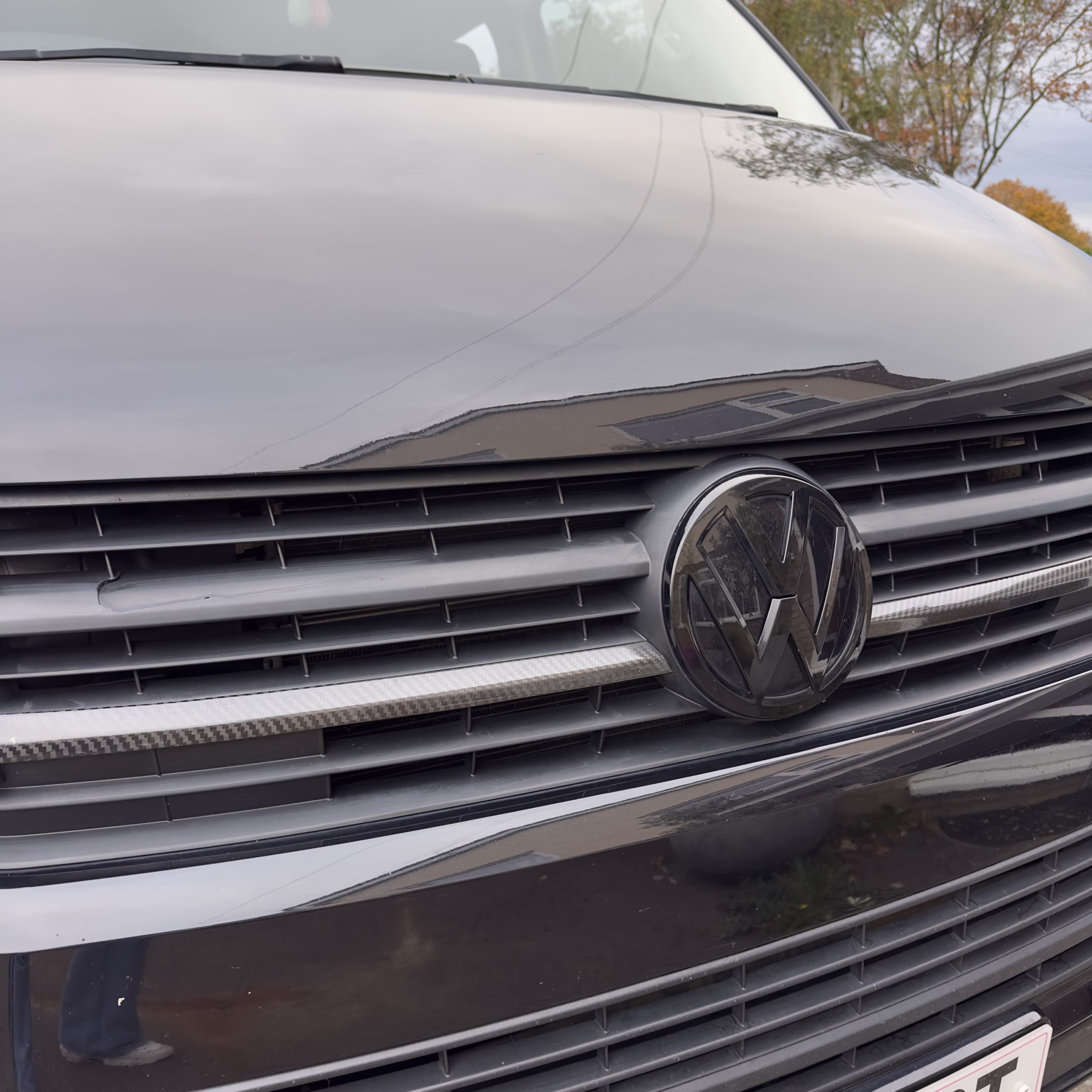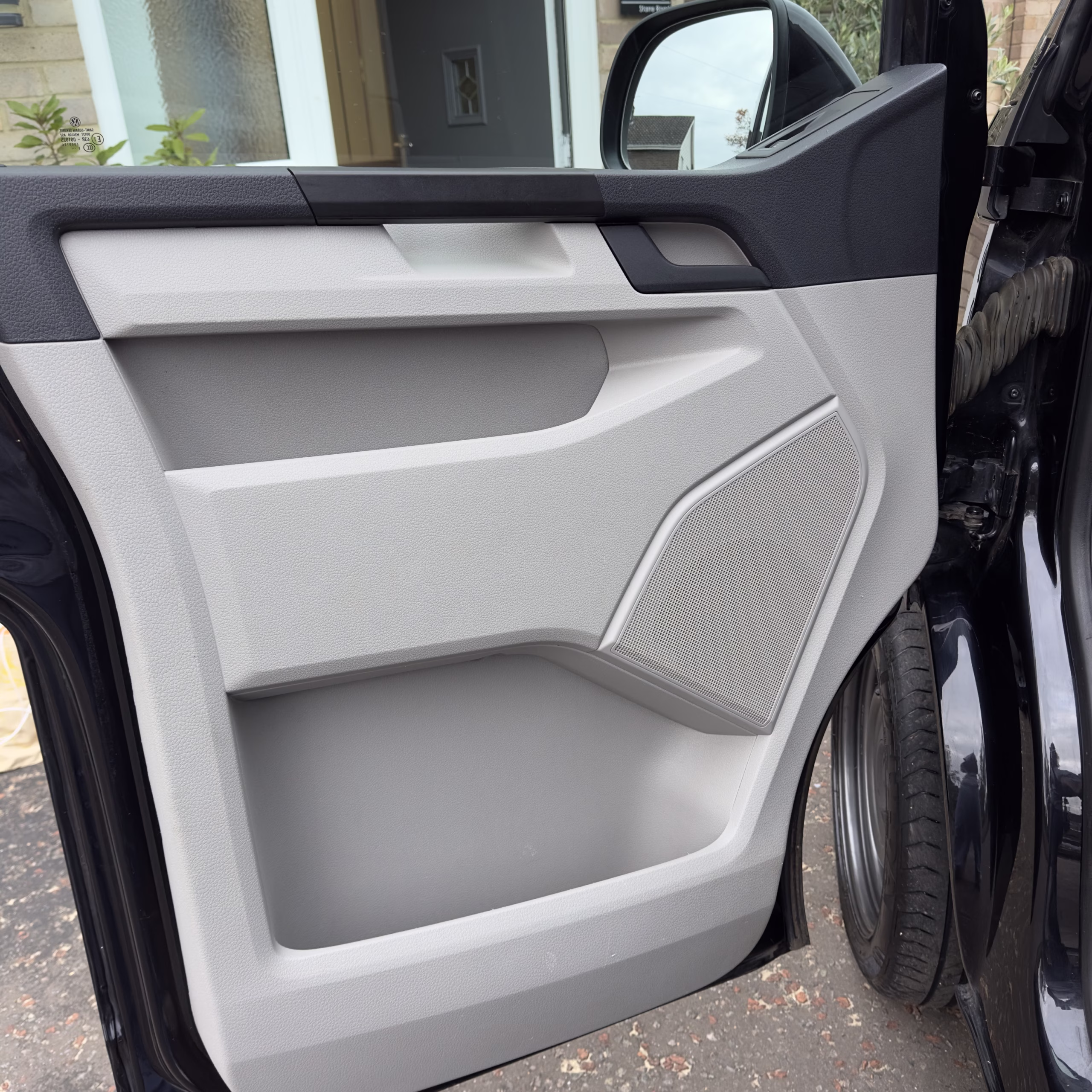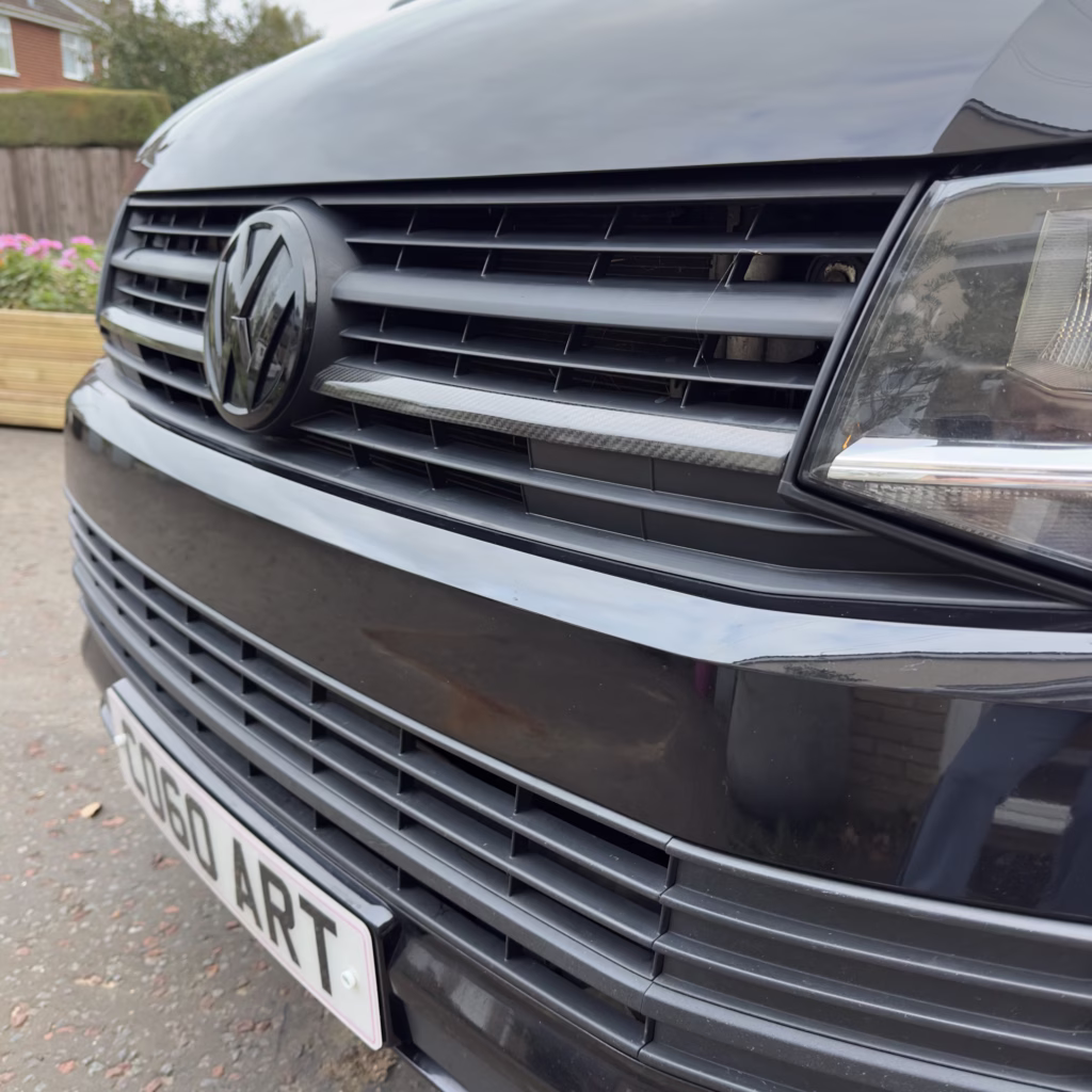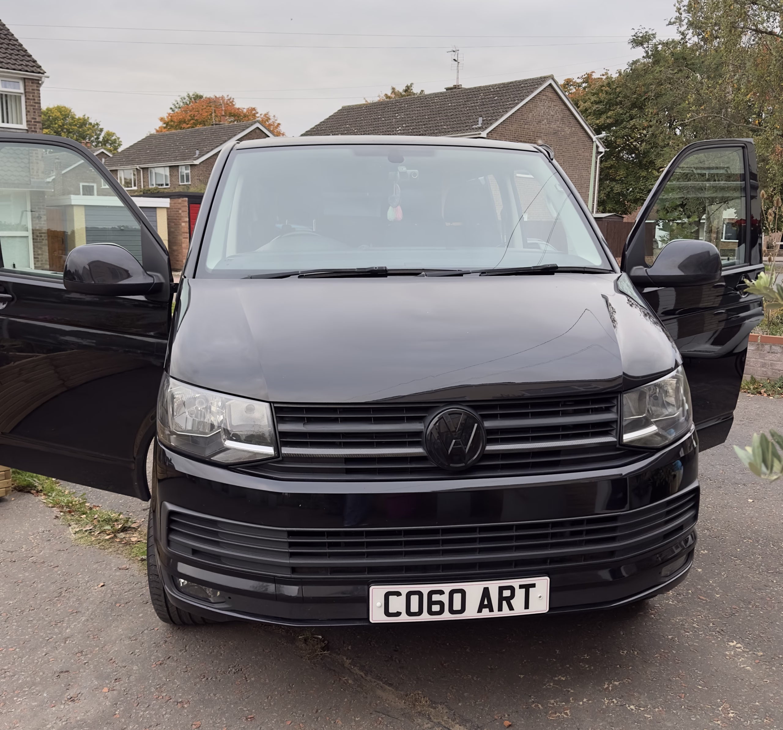 This van runs like a dream, cruises happily at 80mph along the motorway, no rattles, moving around the road, pulling etc. There is no rust, wheel arches are clean, cills are good, and the exhaust is fine. The engine is clean and has been well looked after, having been fully serviced annually. Enhanced alloy wheels with the locking wheel nut – please be aware that two of them are scraped. The bodywork is sound and generally good, minor scratches commensurate with the van’s age. The front upper vent where the VW carbon badge is has a crack, no idea how I did that. Good set of tyres.