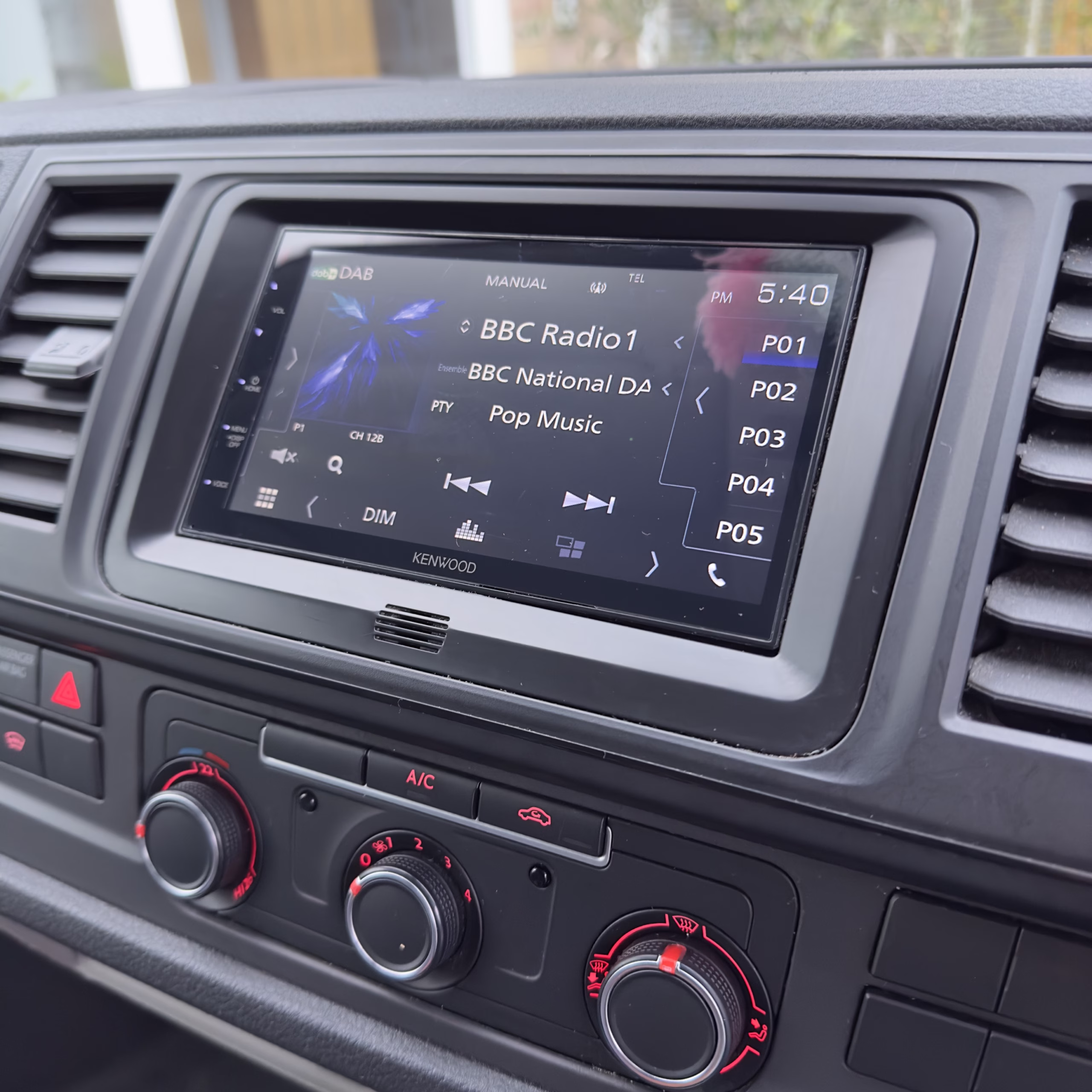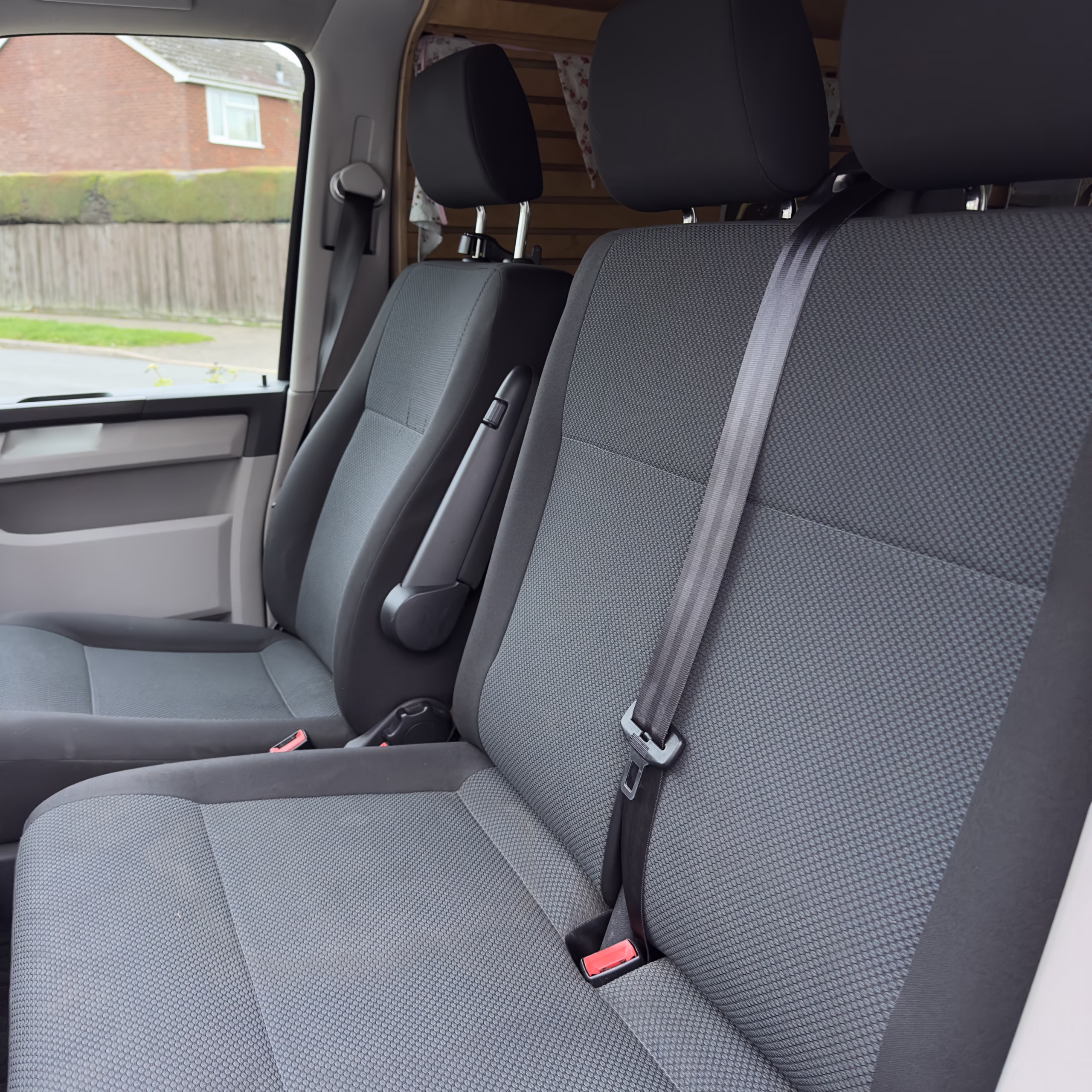 3 fabric belted seats up front with plenty of adjustment in the driver seat. Fully working air con. Infotainment system upgraded to Kenwood Apple CarPlay DMX5020DABS touchscreen display with receiver, DAB radio and Bluetooth mobile integration – handsfree mic also fitted.
