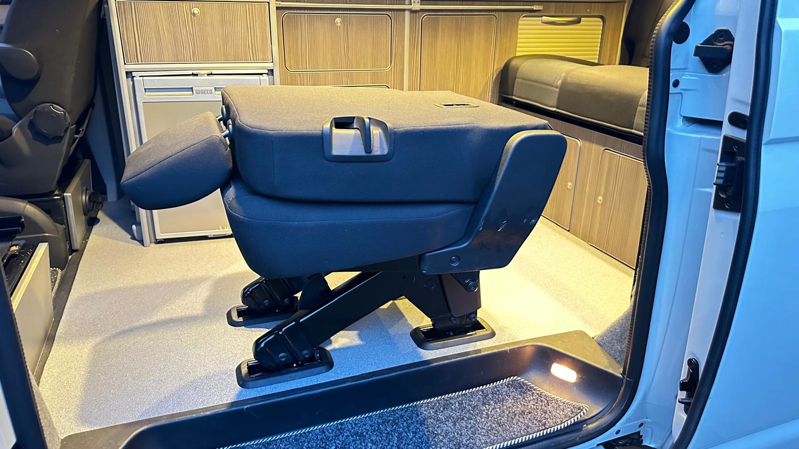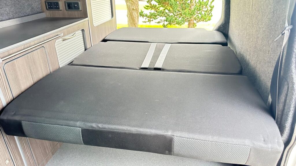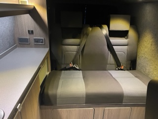 • Rear double seat converts to bed – RIB 112 cms, storage underneath