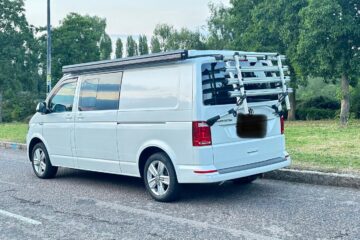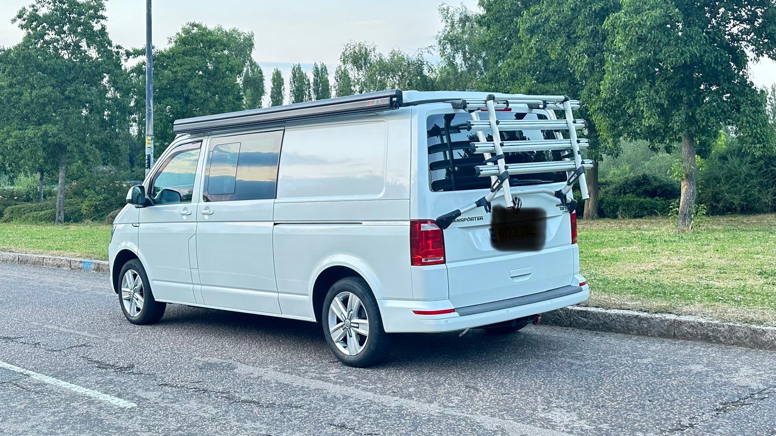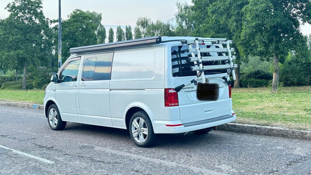 • VW folding bike rack fitted to rear tailgate for up to 4 bikes