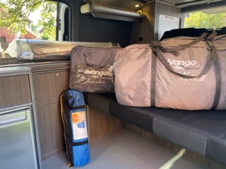 • Vango Grey Kella driveaway awning (tent) with internal grey carpet & pump (used a handful of times). Provides extra storage space for outdoor chairs/sleeping space