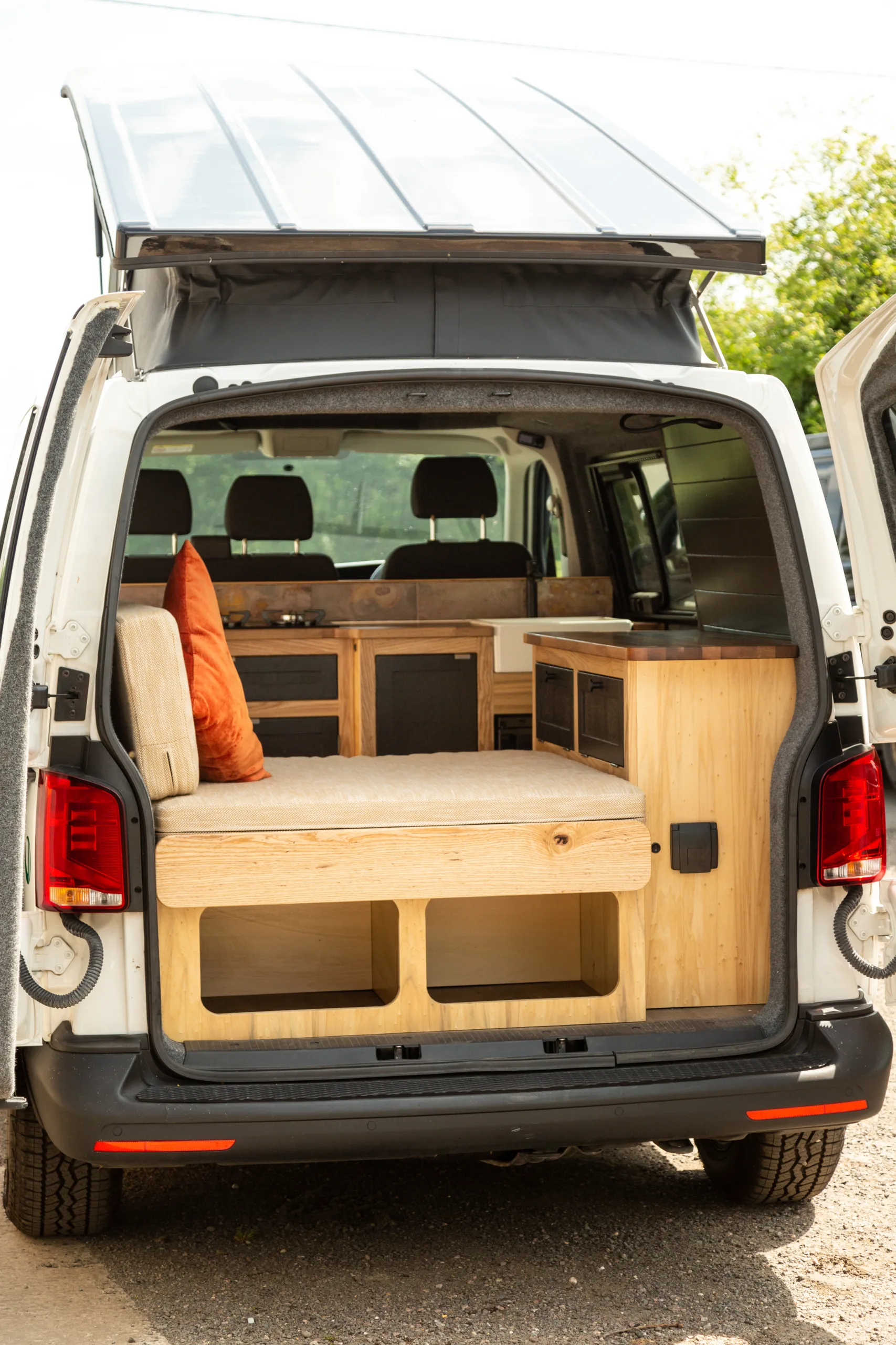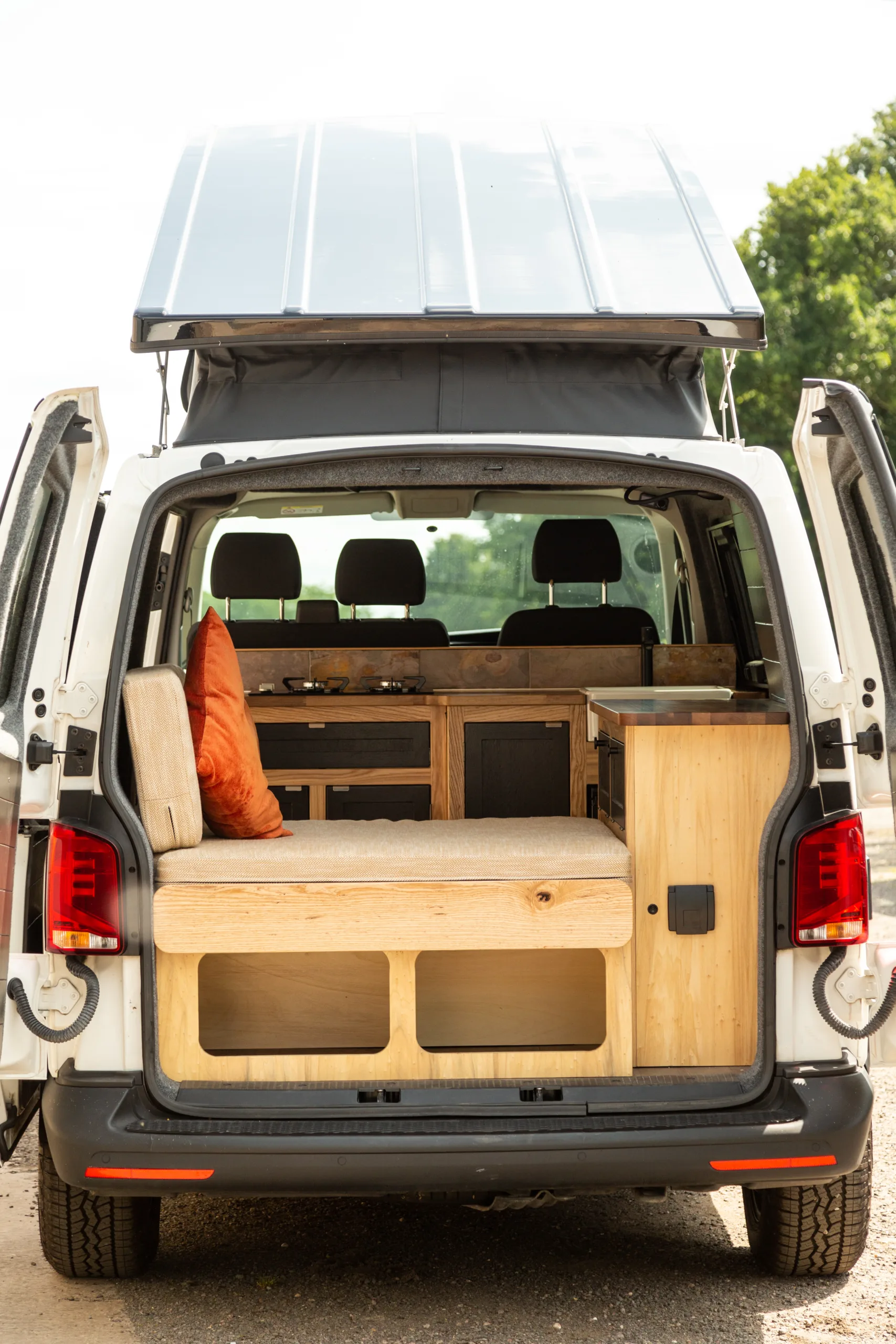 There is a convertible pull out bed in the main living area which also acts as a sofa and a full double bed in the pop top