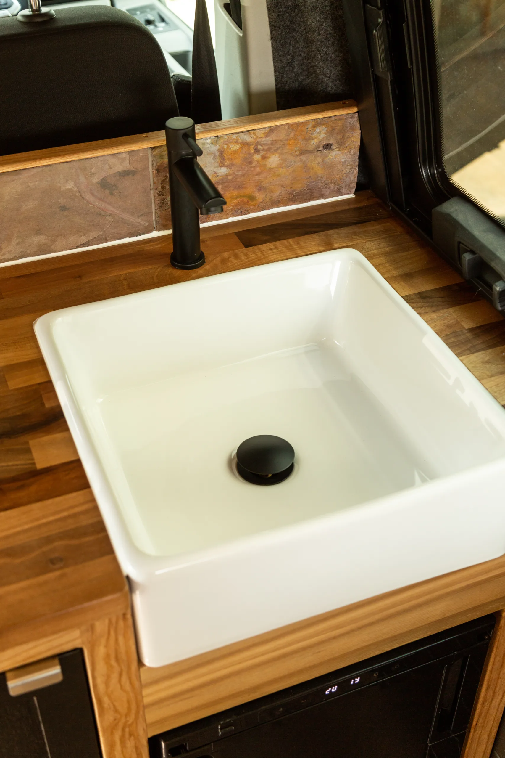 – Ceramic Sink with Black Tap with Automatic Shurflo 30psi Water Pump