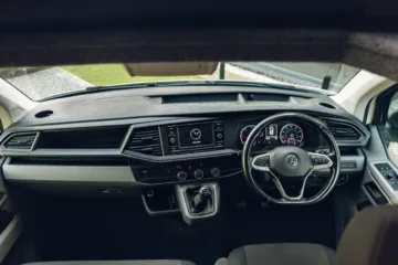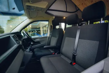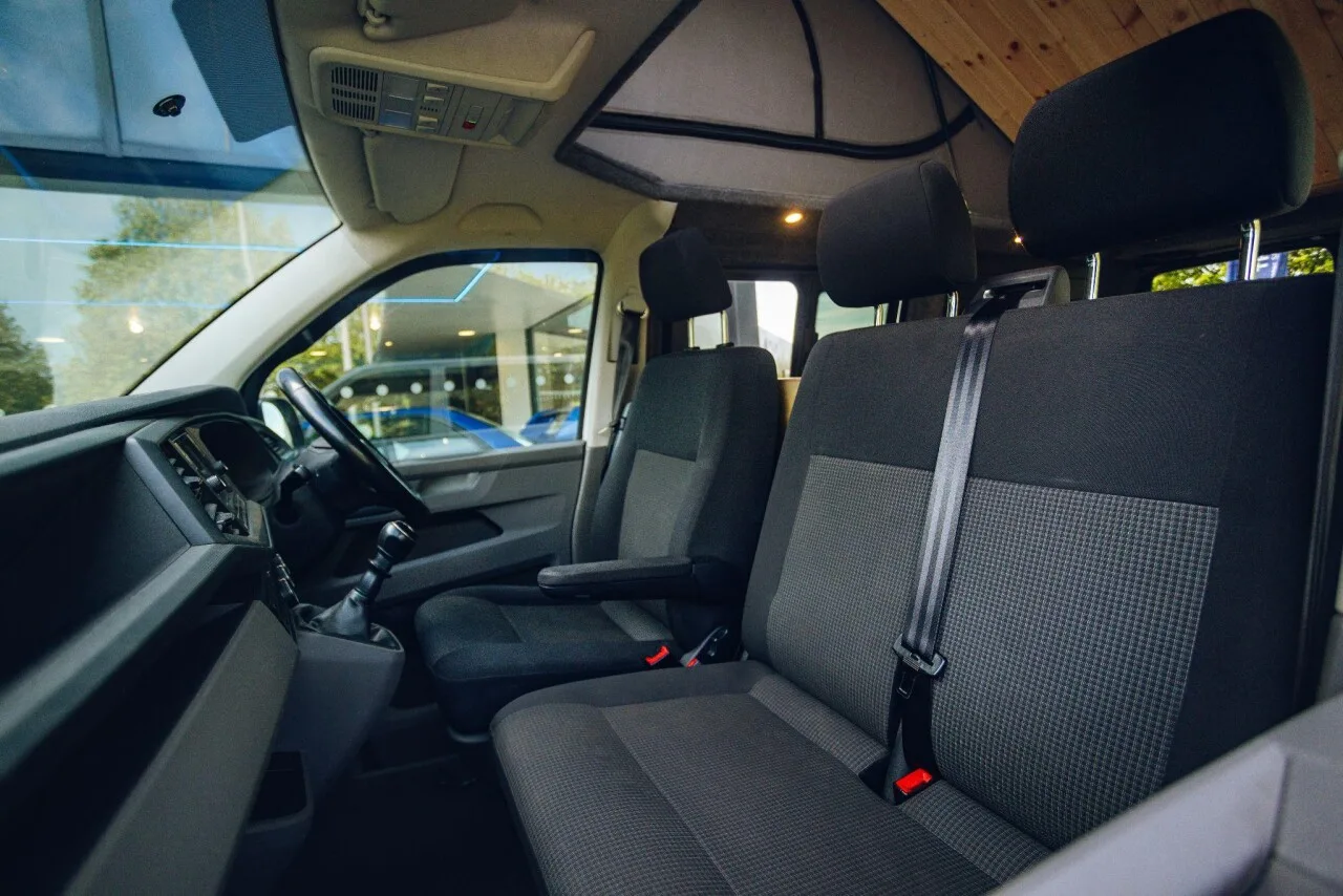 The van is a 2020 Transporter T6.1 in candy white, with only 59,600 miles on the clock and a converted weight of 2,200kg. It also comes with the comforts of air conditioning, cruise control and CarPlay.