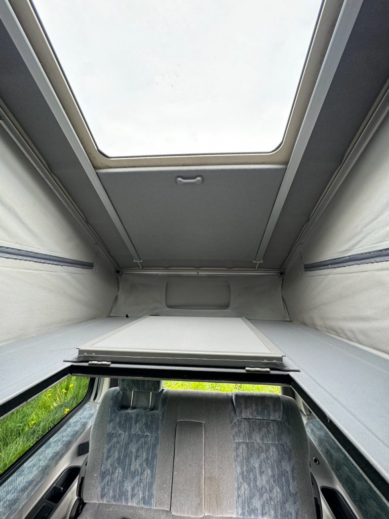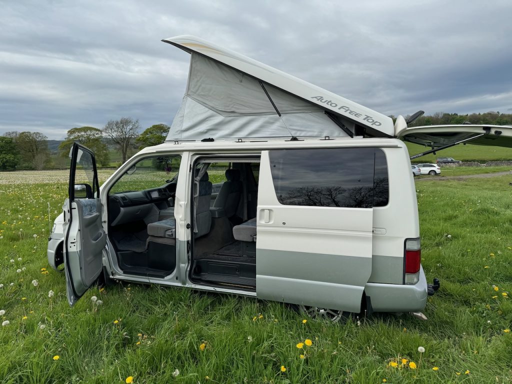 Unlike many campervans, it has an electric pop-top. It also has tinted rear windows with built-in electric blinds.