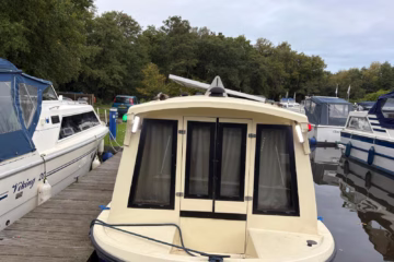 We are selling Josselin, our Wilderness Beaver 23ft. She is a fibreglass narrowboat, light enough to be towed with her outboard attached which means she doubles up as a floating caravan on a trailer. In this mode youβre able to travel anywhere you can dream of in UK, land and water! Road trip to Europe and beyond, then reverse her into any large or small body of water, lake, canal or river, ready to continue your adventure. Settling only 11 inches into the water (draft) means there are very few places Josselin canβt go. With her outboard down or up (depending on the depth of water) she manoeuvres and turns very easily. She can fit 3 adults and a small child. Sheβs welcomed in campsites with smiles and plenty of intrigue.