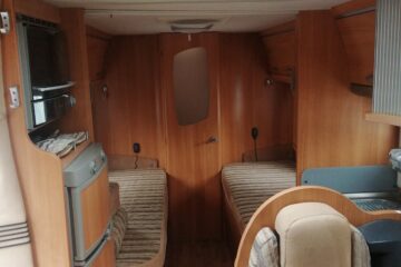 End of season reduction. Mot until 06.09.2025. 2008 Chausson Allegro 96 coachbuilt motorhome with 32000 miles. It is built on the Fiat Ducato 2.3 diesel at 130 BHP with a 6-speed manual gearbox, the cab consists of Cruise Control, Air Conditioning and CD Radio, accordion window blinds and a vehicle alarm. Twin single bed layout with a full bathroom across the rear, featuring a separate shower, toilet, and vanity sink. Ahead of the bedroom is the spacious kitchen with 3 burner hob, sink, Dometic combination oven/grill, and a 175l fridge freezer. The front lounge has a two belted seat bench and side bench that will convert into another single bed at night. Swivelling passenger and driver’s seat offer additional seating during the day. It also benefits from the addition of a Fitted Awning, rear view Camera, Solar Panel which charges the leisure battery and a rear cycle rack. This motorhome also comes with a fold out TV in the lounge, 240v hook up cable and levelling ramps.