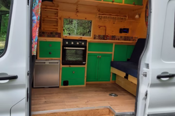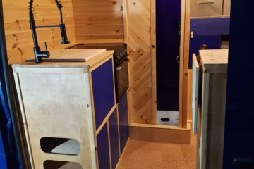 Cosy camper conversions is a family run operation. My name is Malcolm. I have a PhD in mechanical engineering and I love making beautiful and functional things, especially out of wood. I live in Midlothian with my wife, Clare, our two young children and our cat. I’ve spent a lot of time living in small vans so I have an appreciation of all of the little details which can make living in a van such a joy.