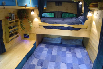 My Signature conversion is based on a Fort Transit L3h3 or similar, with two double beds, six belted seats and everything you need to keep you comfortable off grid. One of the beds can easily partitioned into two child beds to make an ideal family van.
