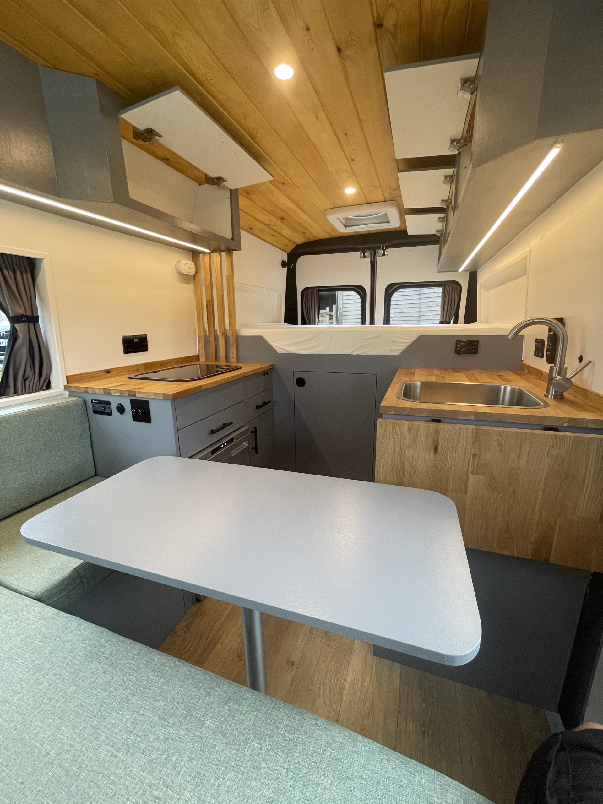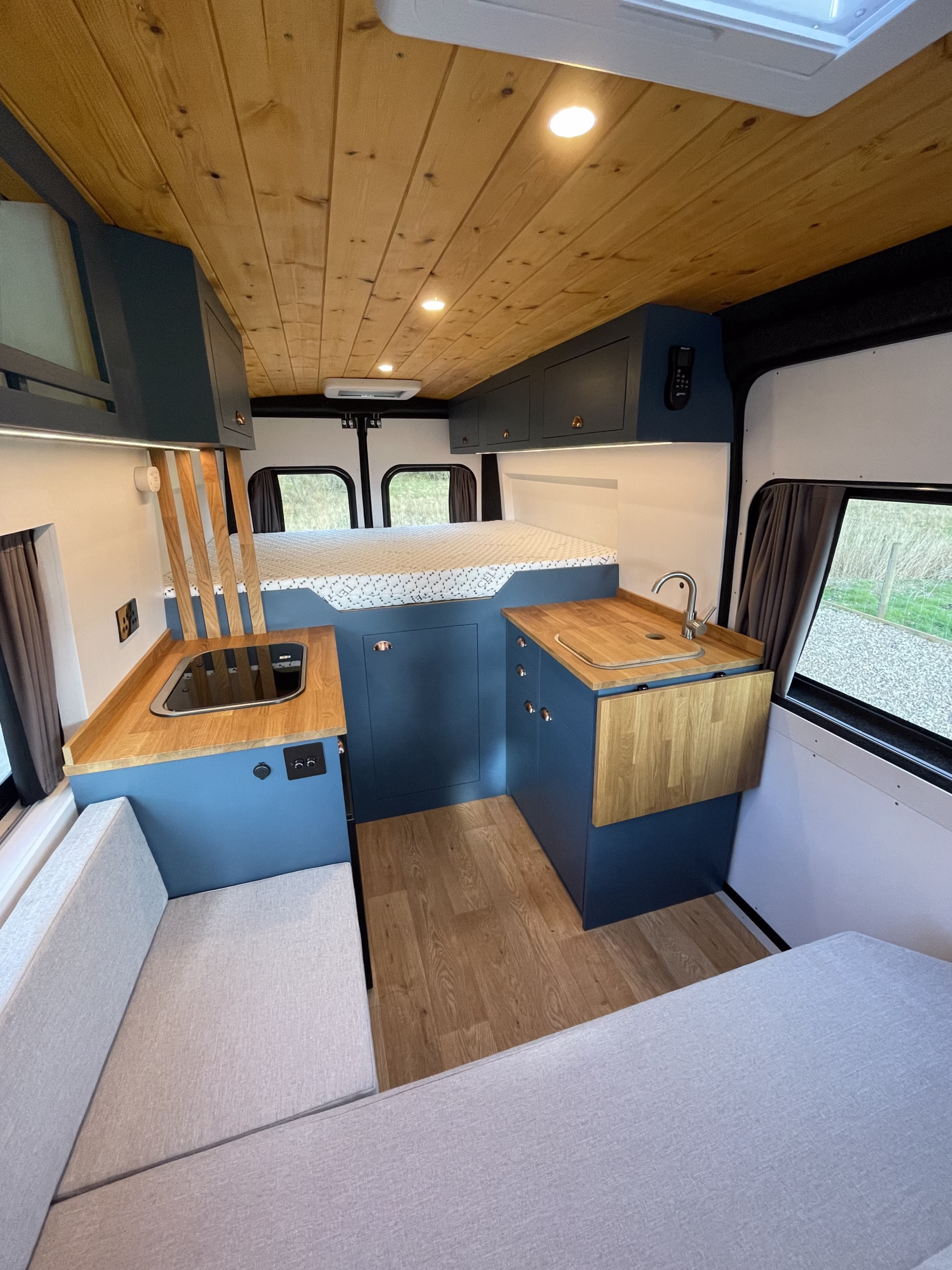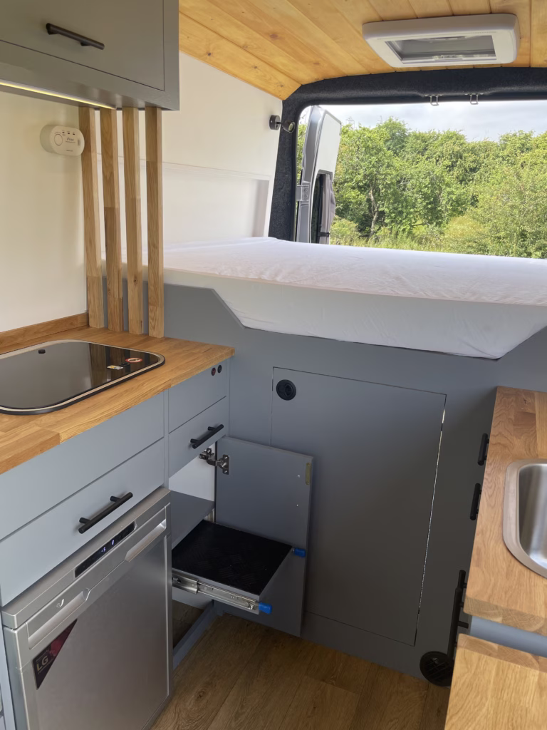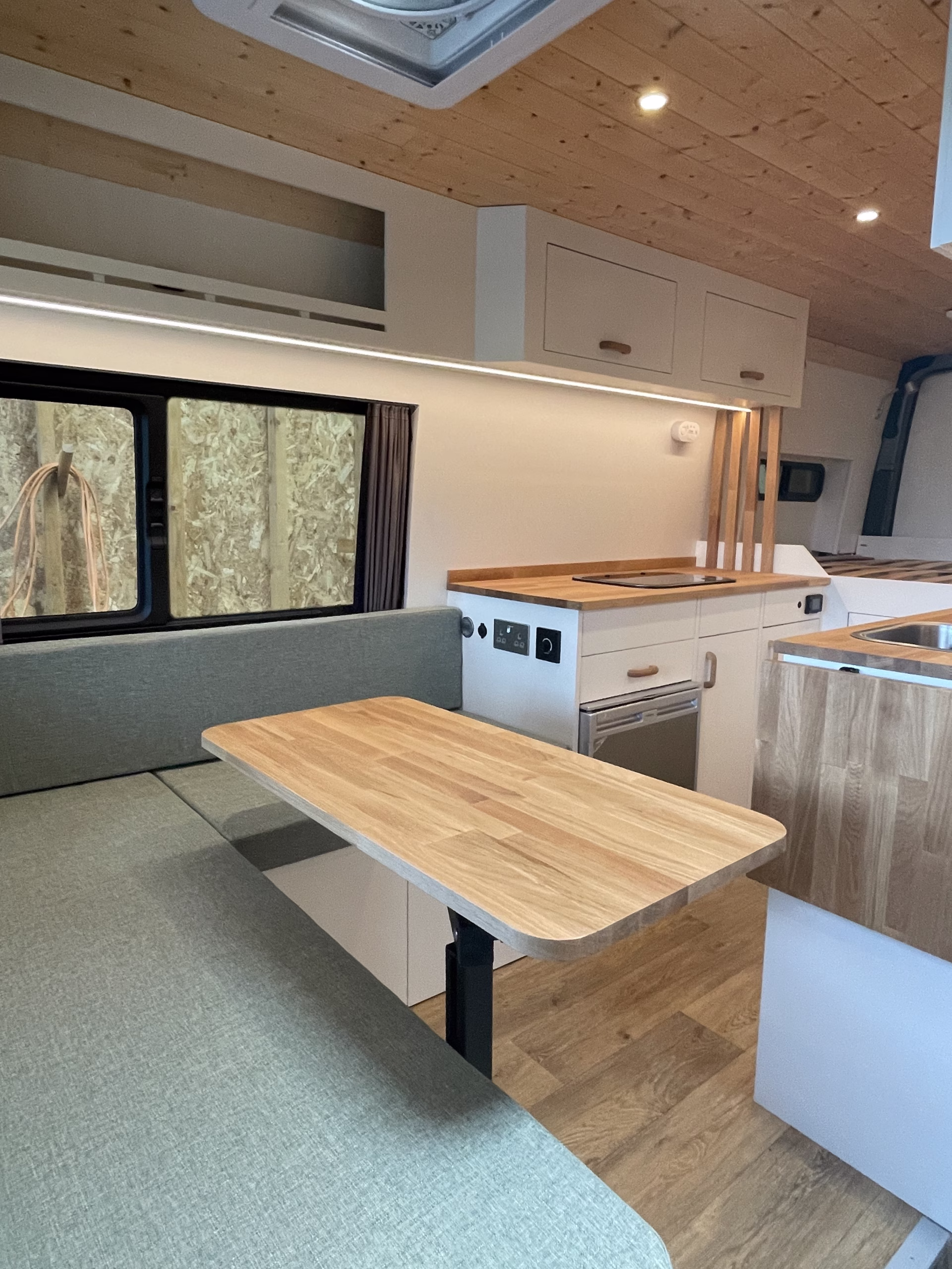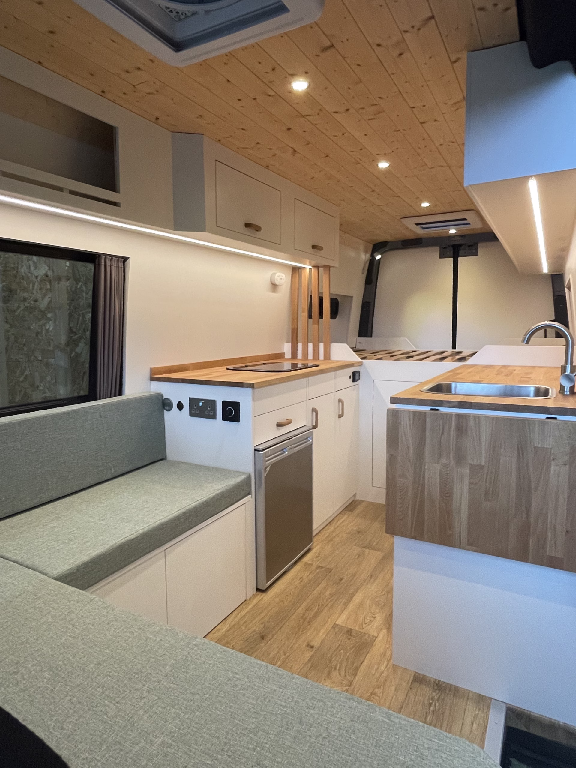 Using materials such as oak, pine, plywood and a range of others, we can create a nice environment within your campervan to sit back and relax in. We work closely with customers to achieve the desired outcome and really get to know individuals to use our expertise in campervan design.