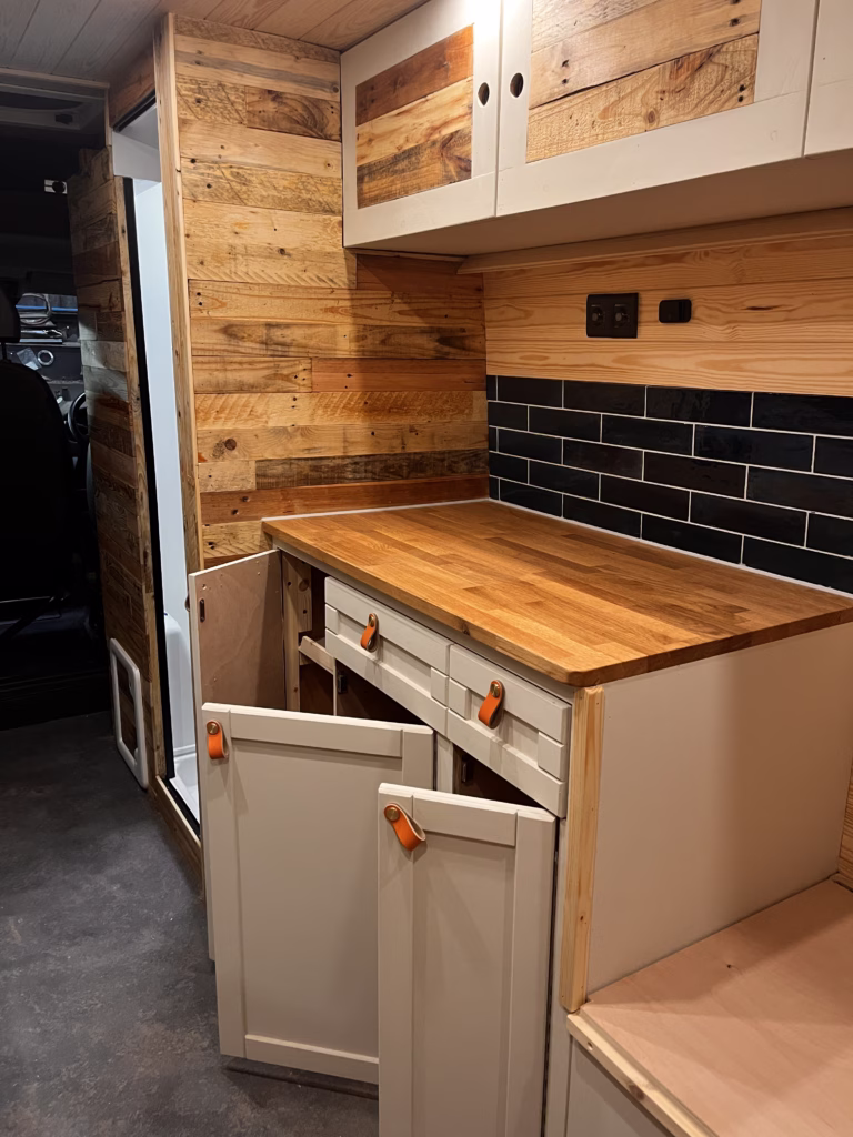 I love to work with reclaimed wood giving your van a real quirky & home away from home feel.