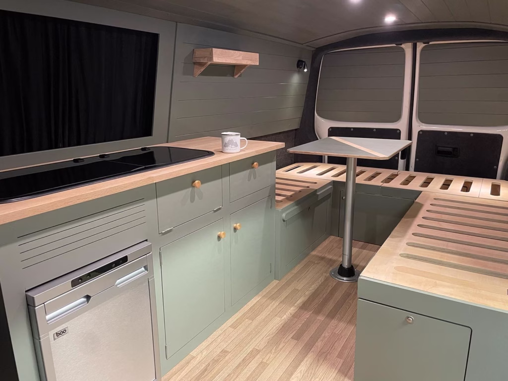 After working for a large company building VW campervans, lovelessly knocking out one VW T6 every week, I realised that, that style of camper and way of working wasn’t for me, so I decided to set up my own conversion company and couldn’t be happier! It’s a great feeling knowing that some of my customers live in their vans, another went to Glastonbury Festival, many have been to Scotland and at one festival 3 vans built by me all camped together.